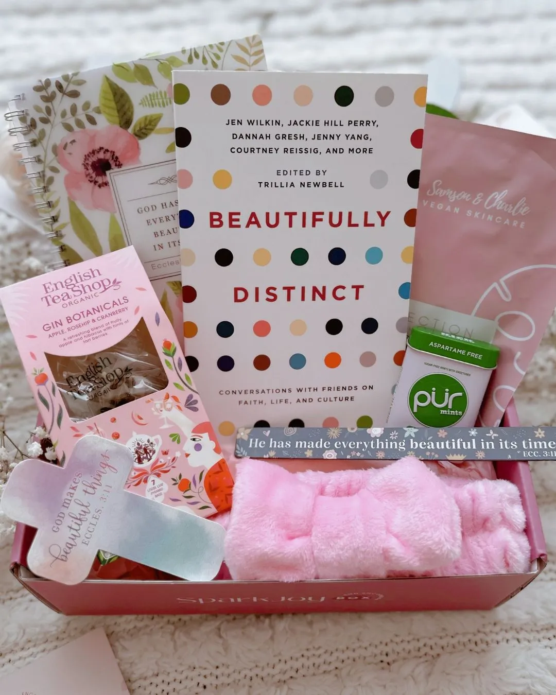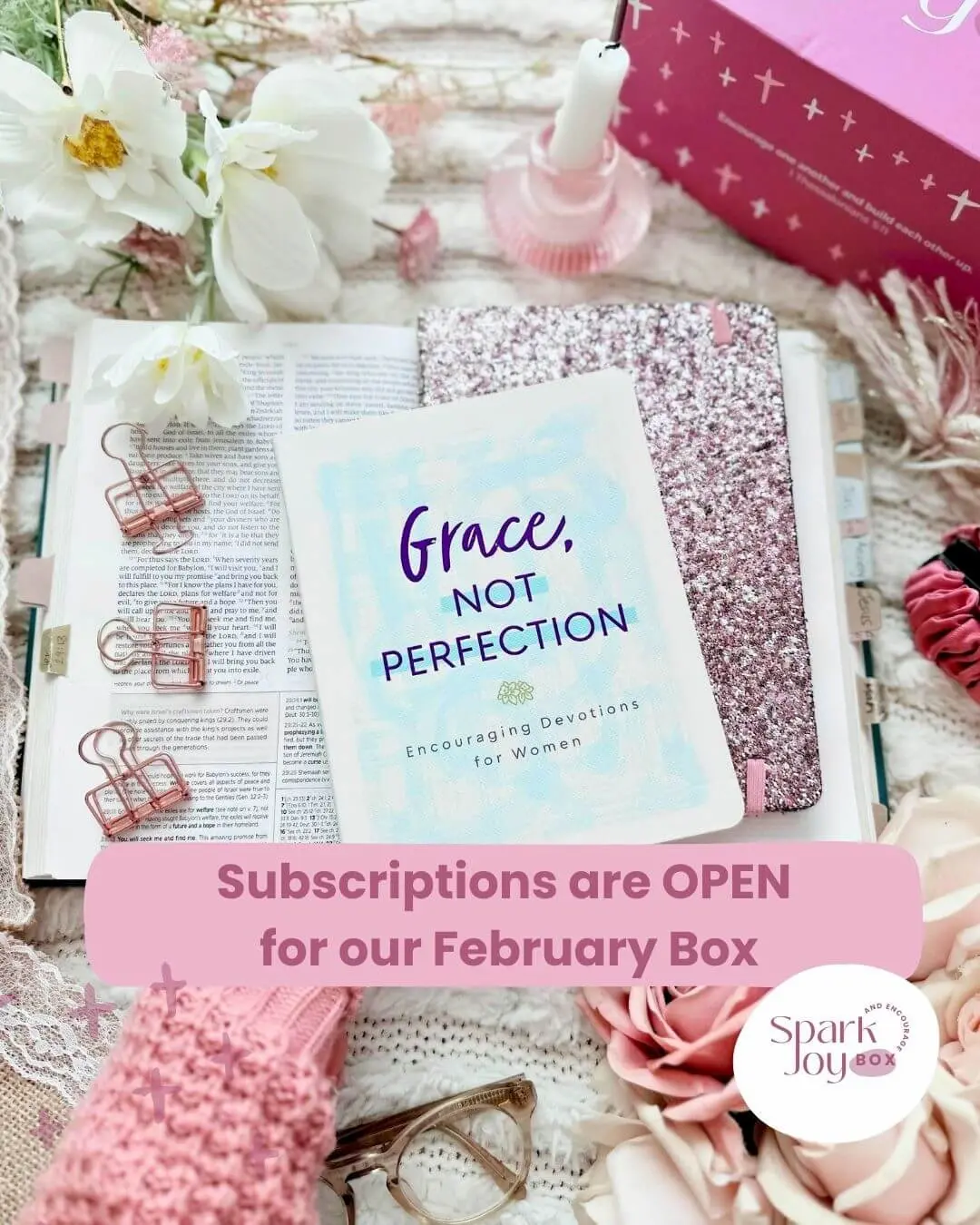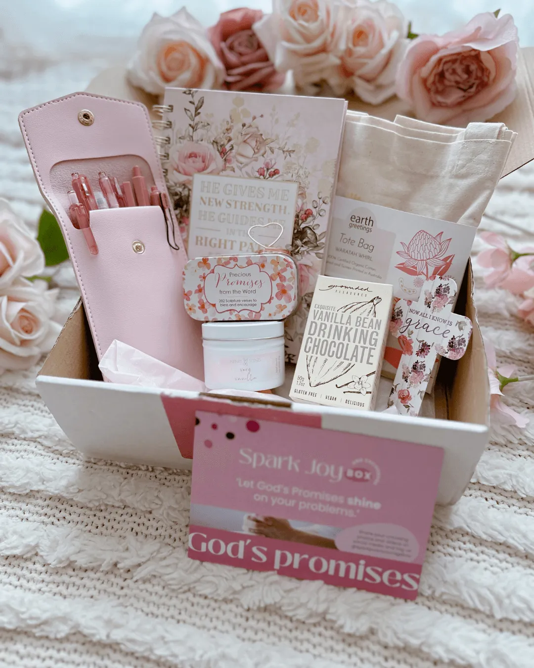 Join women like you on a journey to spark joy and encouragement with our Christian subscription box filled with devotionals, Bible studies, novels, journals, and self-care items—each month brings a new theme designed to bless your faith walk.