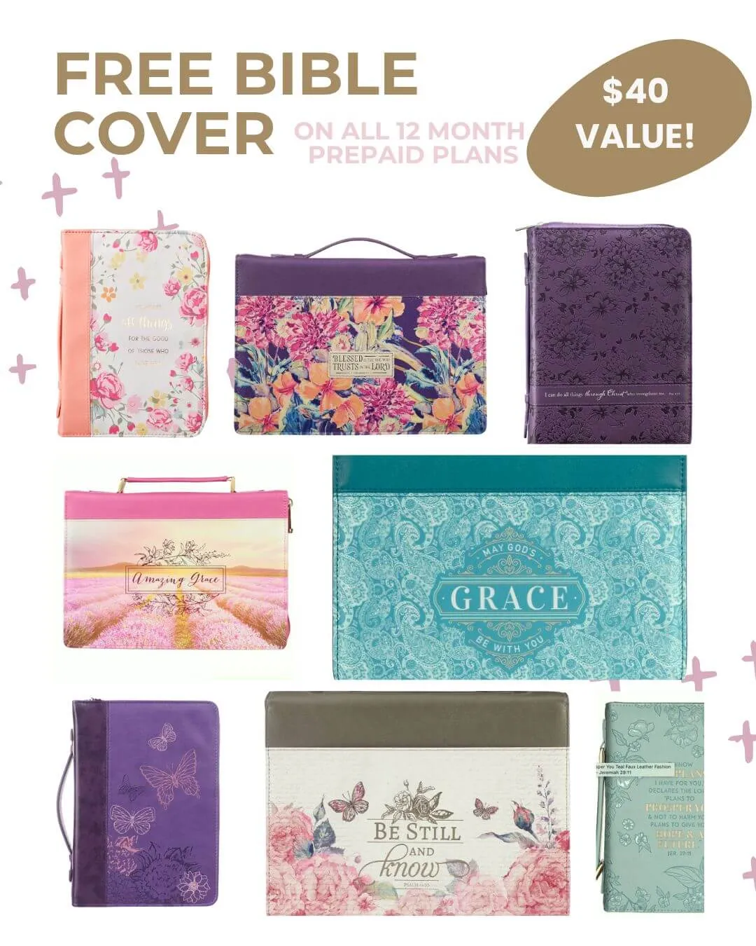 RECEIVE A FREE BIBLE COVER WHEN YOU SELECT OUR 12-MONTH PREPAID PLAN